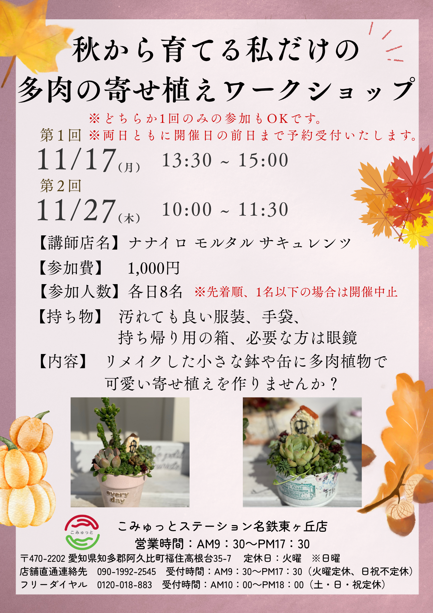 こみゅっとステーション名鉄東ヶ丘で11月に開催されるイベントのお知らせです。